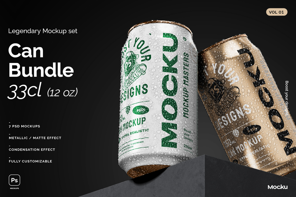 Our pack offers high-quality mockups suitable for 33cl / 12 oz cans, perfect for beer, energy drinks, and sodas.