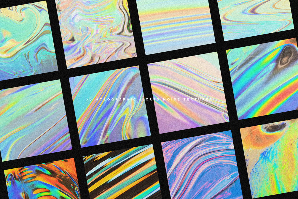 Embrace the grainy yet futuristic charm of these holographic liquid noise textures and transform your designs into works of art. Let your imagination run wild and create visually striking compositions that leave a lasting impression.