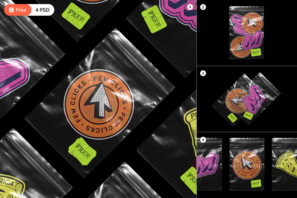 Sticker With Zip Bag Mockup - FREE