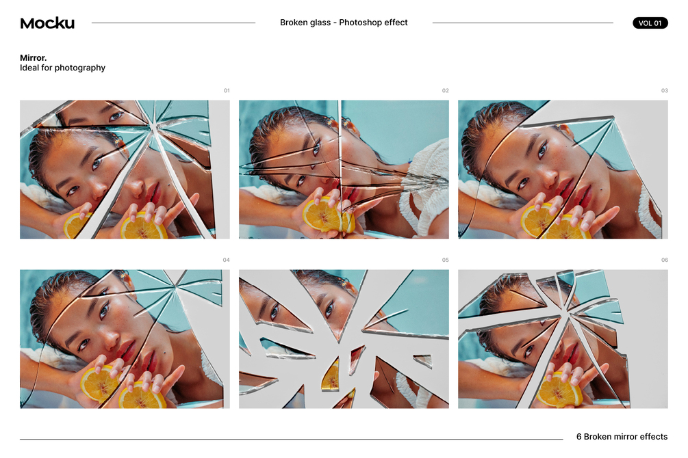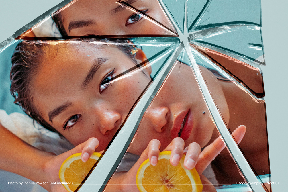 6 broken glass effects & 6 broken mirror effects / Res: 5000px x 3333px / Instruction guide