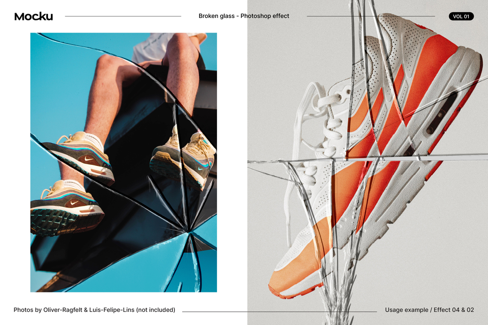 Add a realistic glass effect to your logos and illustrations with this professional photoshop effect. This effect adds a realistic broken glass / mirror effect to your designs, giving them rustic feel. It’s perfect for creating a trendy and shocking aesthetic.