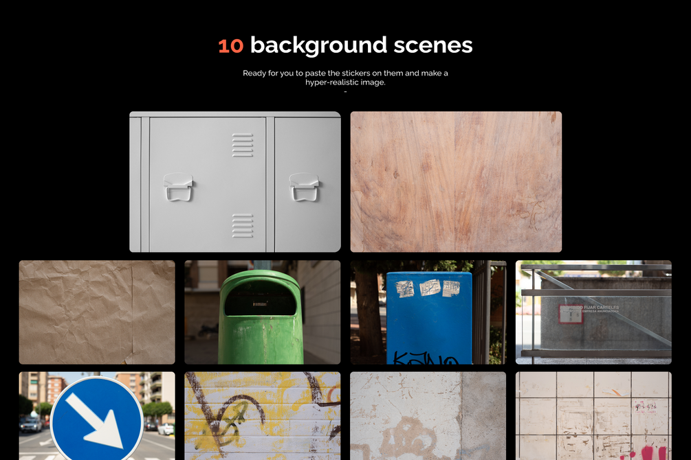Also, The Sticker Machine includes 10 background scenes and 8 premade mockups so you can create your own scenes.