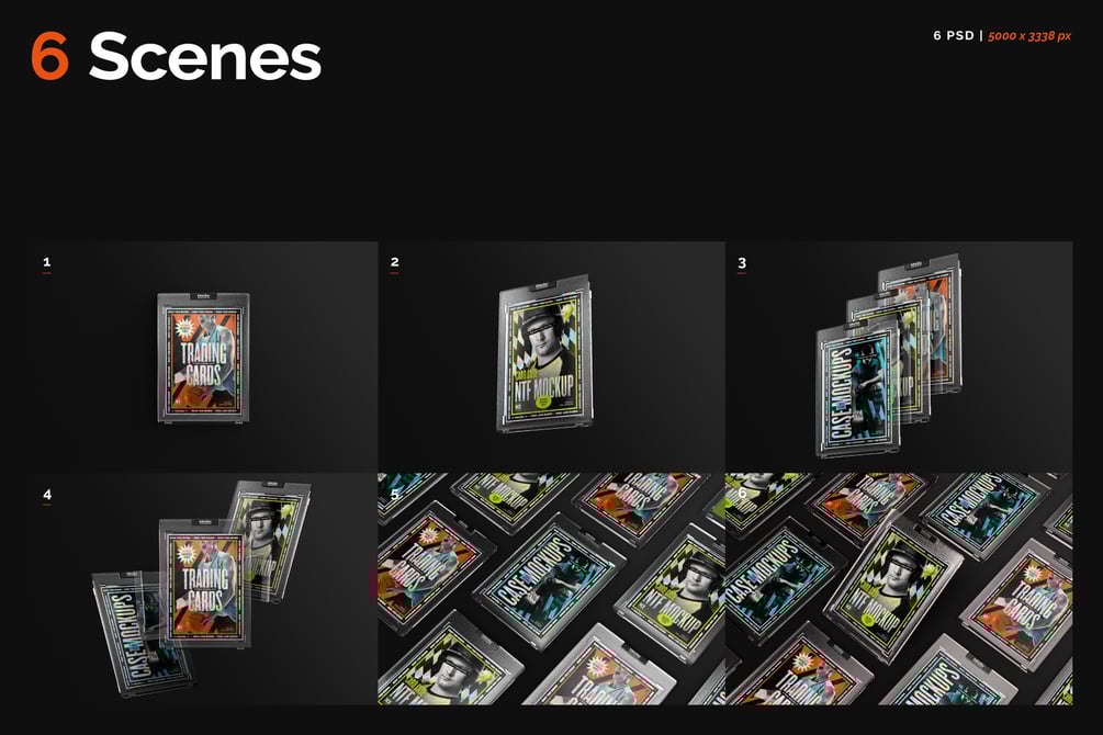 Showcase your trading cards with these professional mockups. Use Smart Objects to change your design in a very simple way thanks to clever file organization. You can quickly replace your design with just a few clicks!
