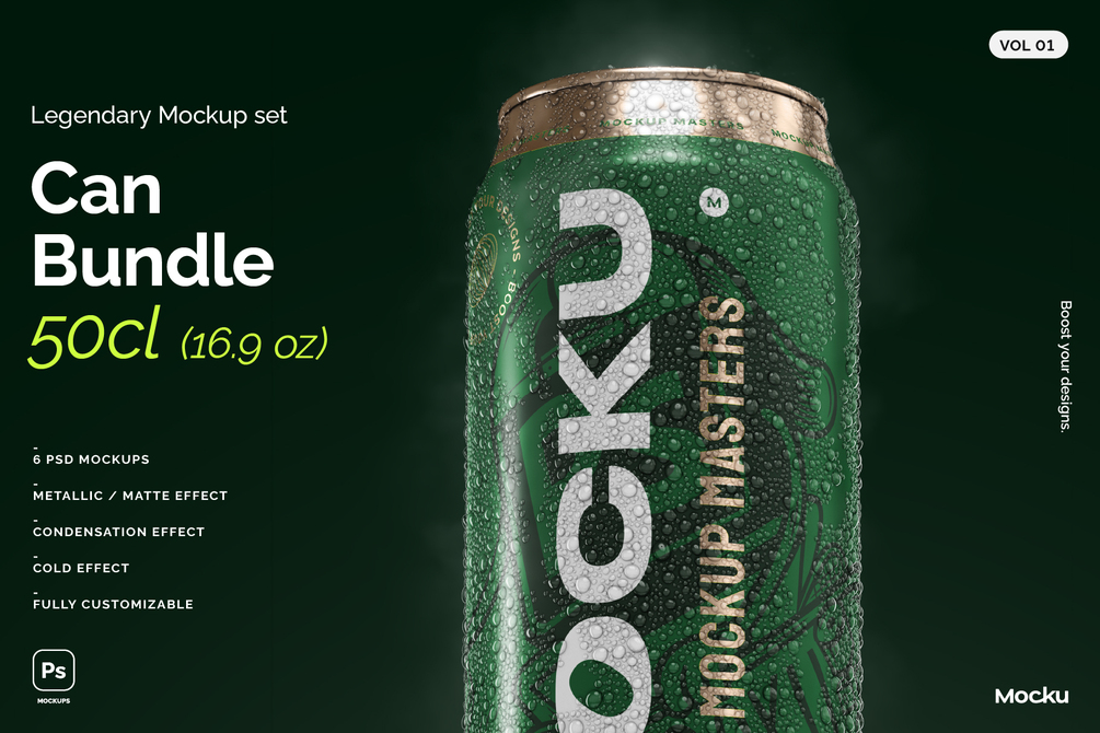 Our pack offers high-quality mockups suitable for 50cl / 16.9 oz cans, perfect for beer, energy drinks, and sodas.