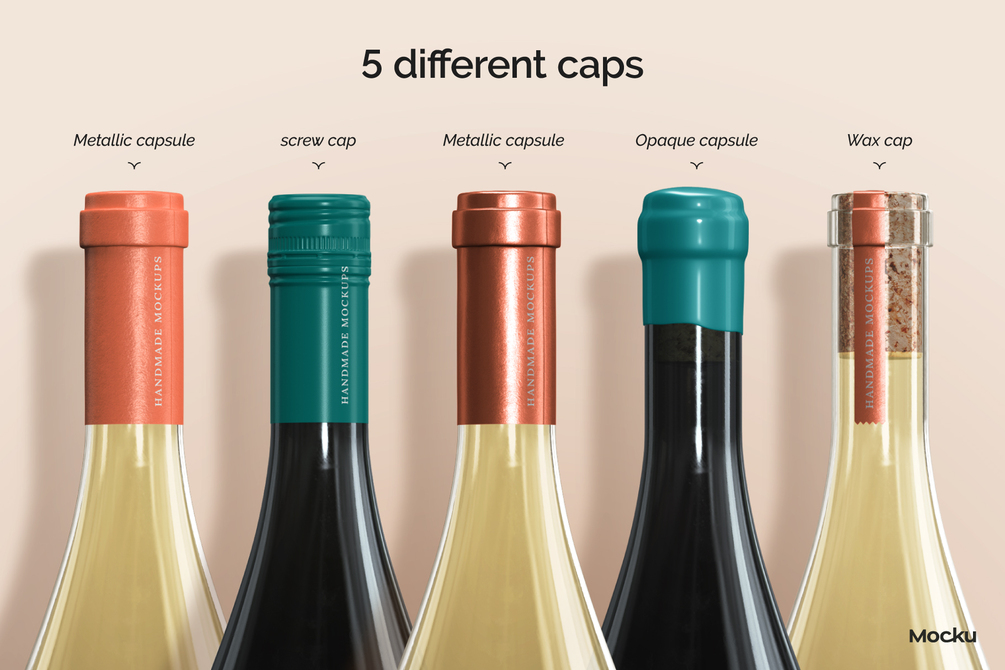- Cap Variety: Choose from 5 cap styles—Metallic Capsule, Opaque Capsule, Screw Cap, Wax Cap, and Editable Ribbon.